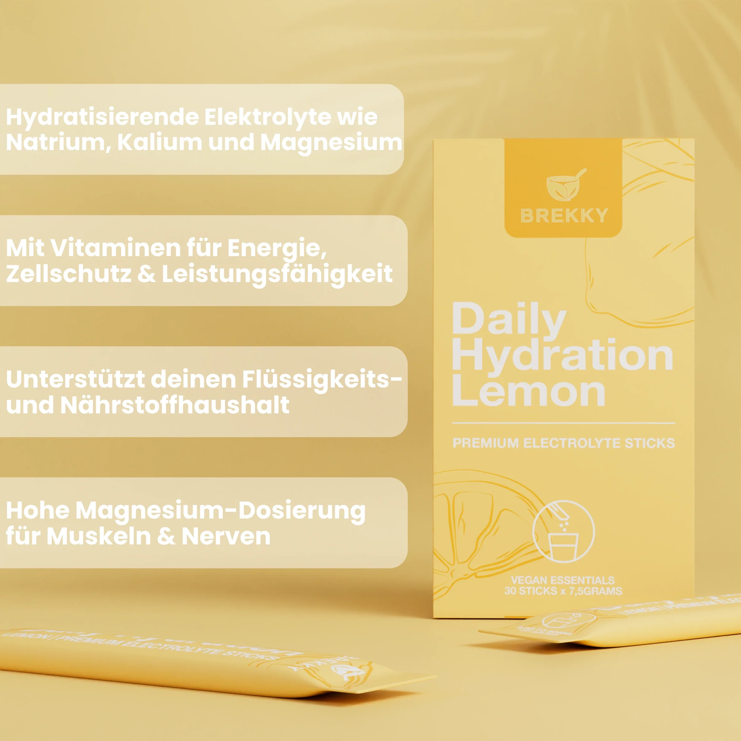 Die Daily Hydration Sticks sind deine einfache Unterstützung für eine ausgewogene Flüssigkeitszufuhr im Alltag 🥰 Sie kombinieren wichtige Elektrolyte & Vitamine und sorgen damit dafür, dass dein Körper optimal versorgt bleibt - ob unterwegs, beim Sport oder im Büro. Der erfrischend leckere Beerengeschmack macht jedes Glas Wasser zum kleinen Upgrade 🍓 Einfach einrühren und genießen.